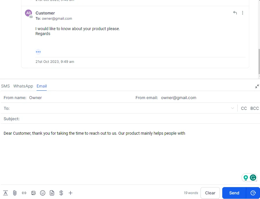 Link your email to view all automated and manual emails, along with text messages, calls, and social media messages, in one integrated channel.